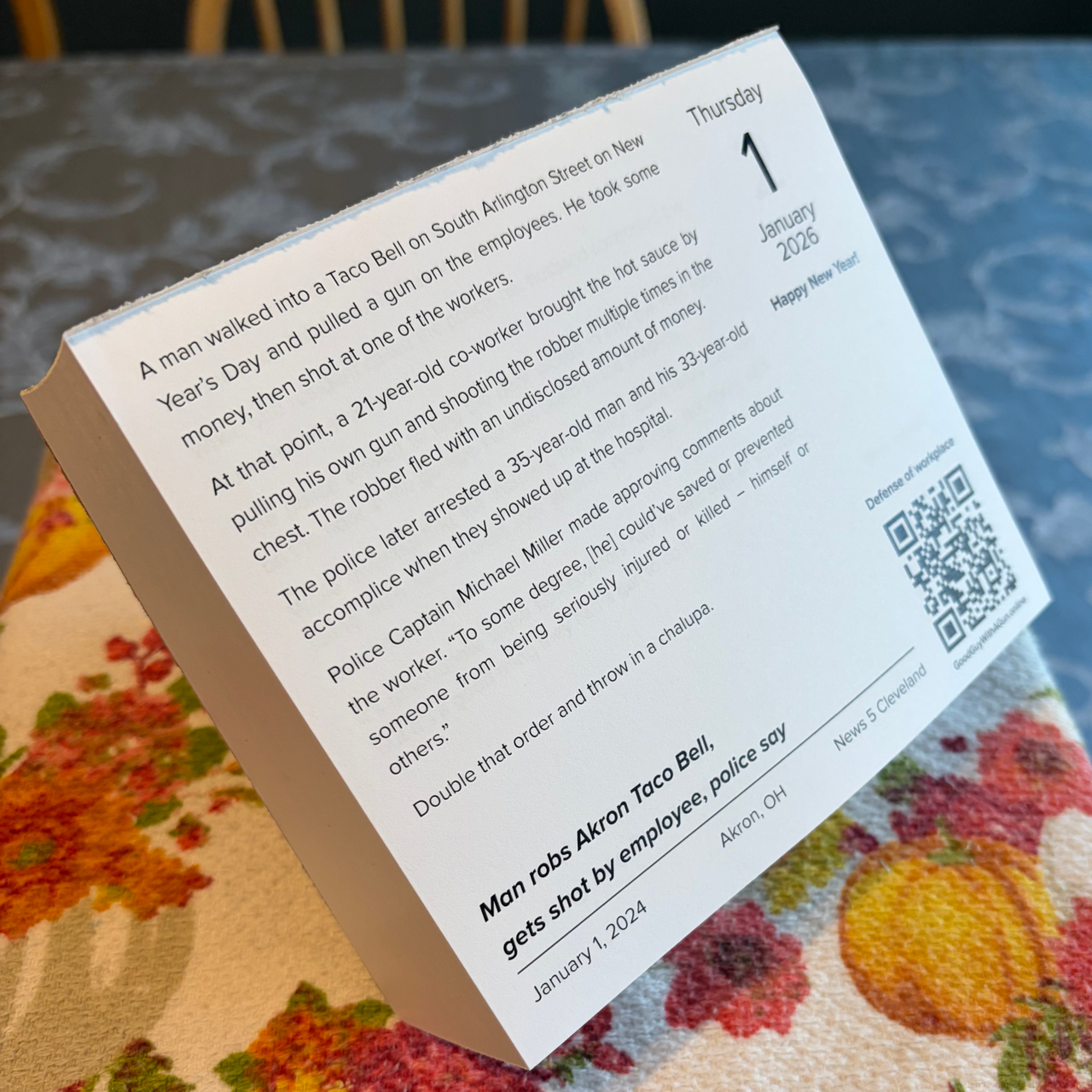 Creators of the brand-new 2026 Good Guy with a Gun one-page-per-day desk calendar!