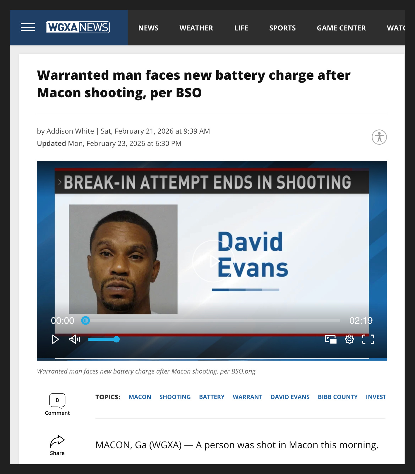 Macon, GA: A man was shot and charged with battery after breaking into his estranged wife’s home.