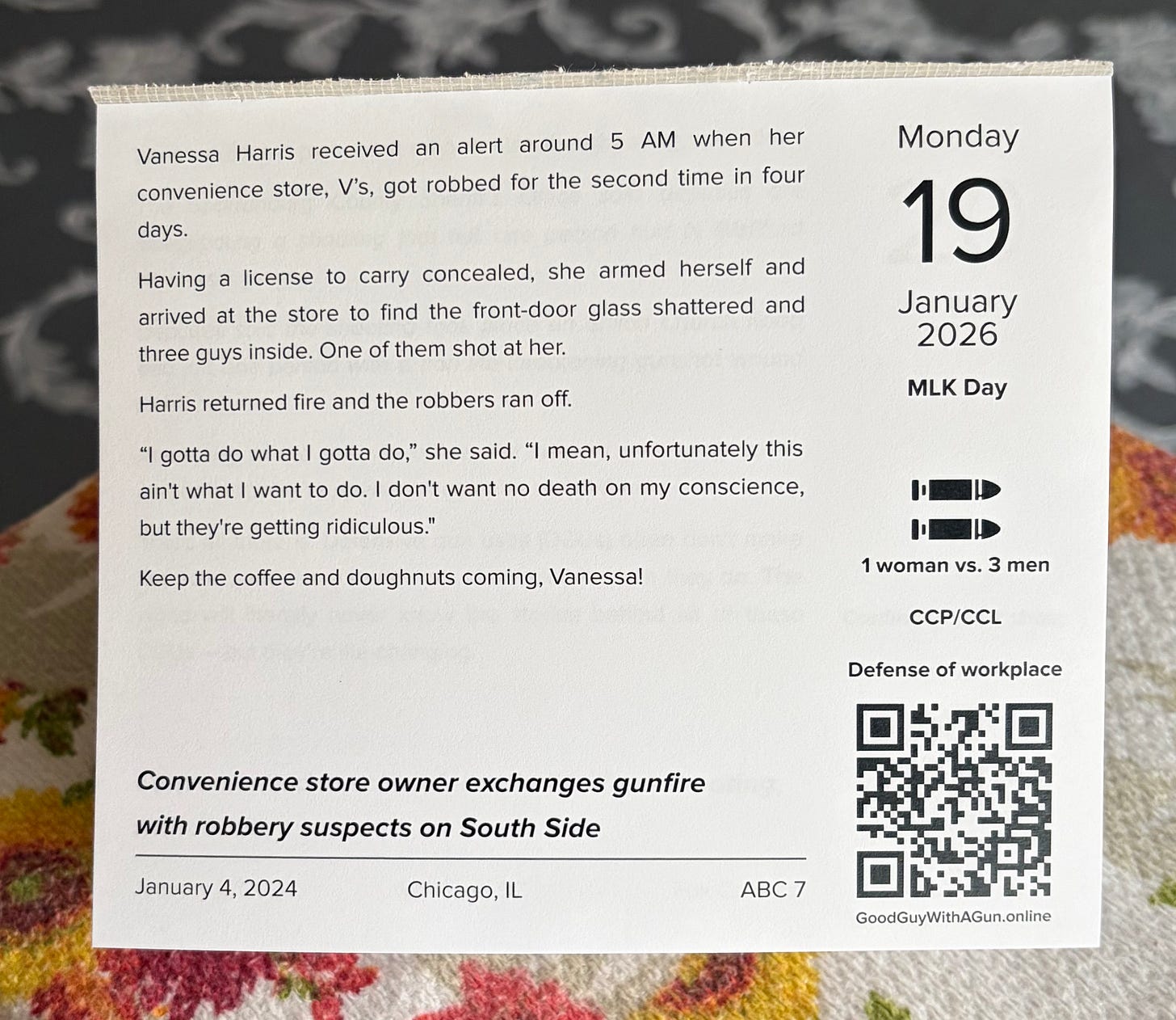 Each page of the GGWAG calendar has a QR code on it that currently links to the best news article we could find about the story. You can try it on the image below, in fact.
