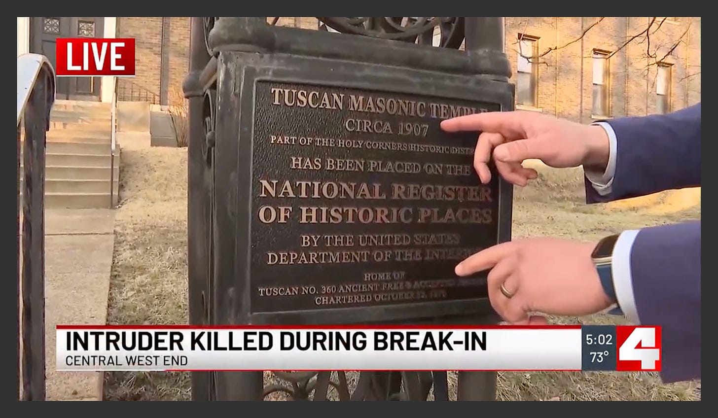 Sure, the Castle Doctrine applies in Missouri, but doesn’t it feel even more like a castle when he lives at the Historic Tuscan Masonic Lodge of St. Louis?