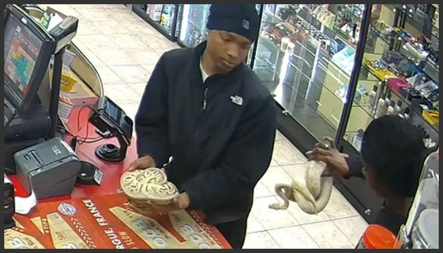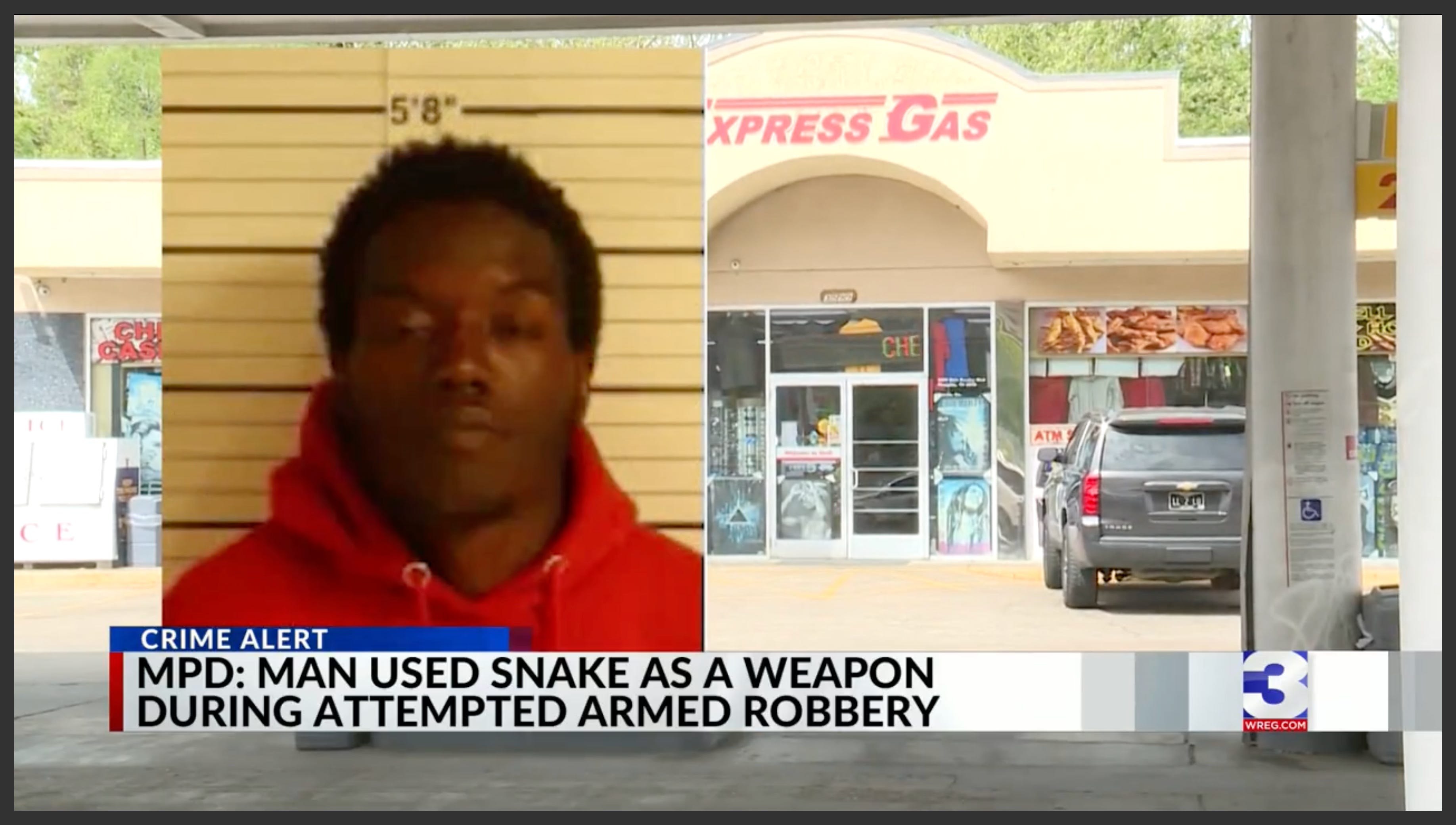 He tried to rob a Shell station with a five-foot snake. The cashier had a gun and better judgment. | Original incident: April 12, 2024