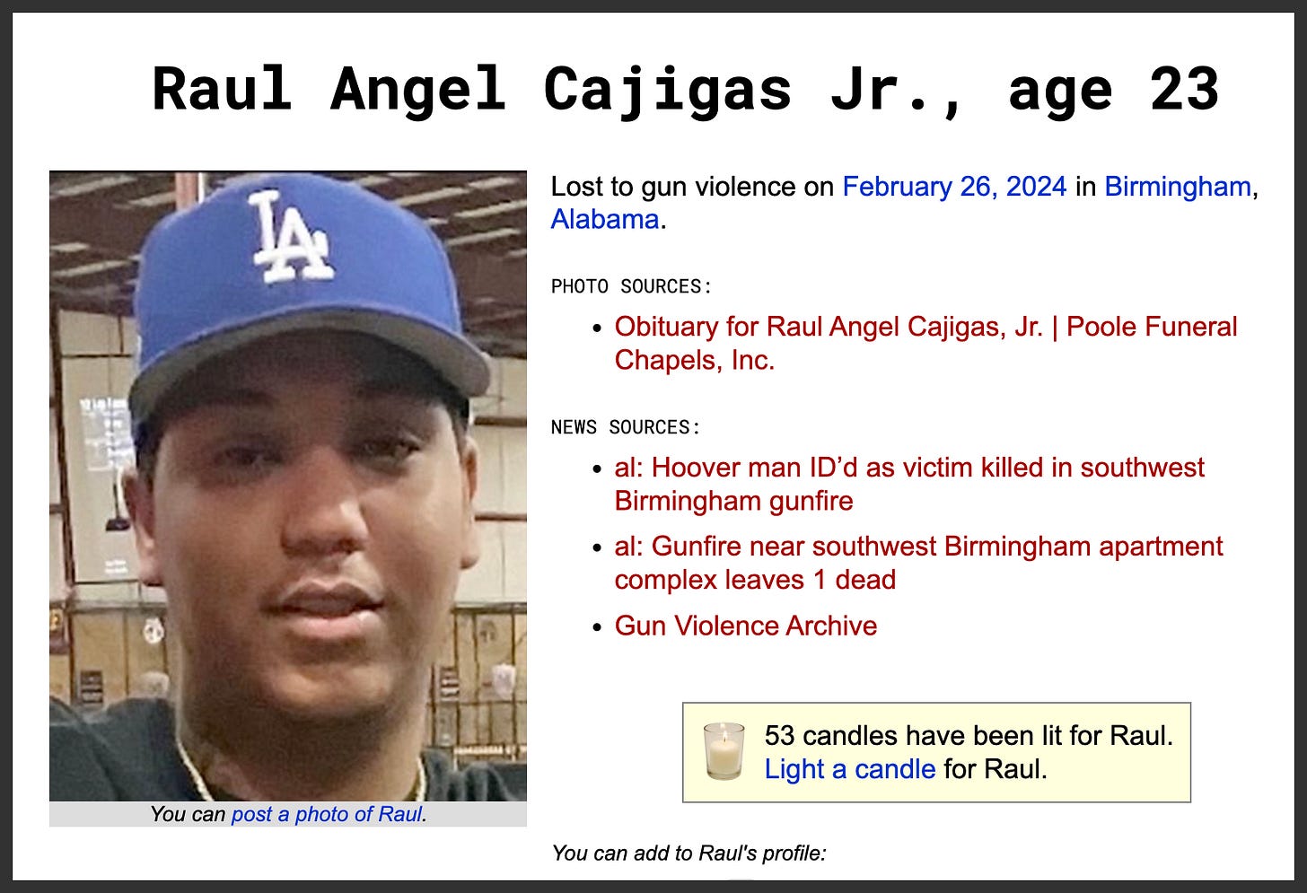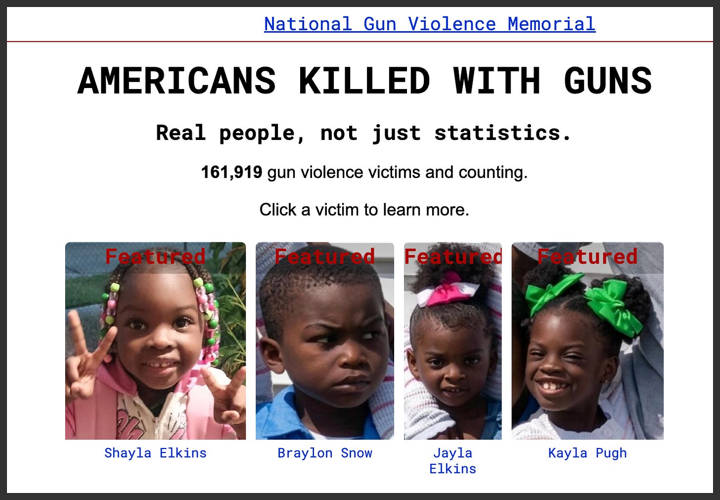 Usually when I point to “specialist” media, it means Second Amendment advocacy or conservative press. This time, I found Cajigas on gunmemorial.org, which is the National Gun Violence Memorial. Notice how they put very small children — unutterably sad, no argument — at the top of the page…