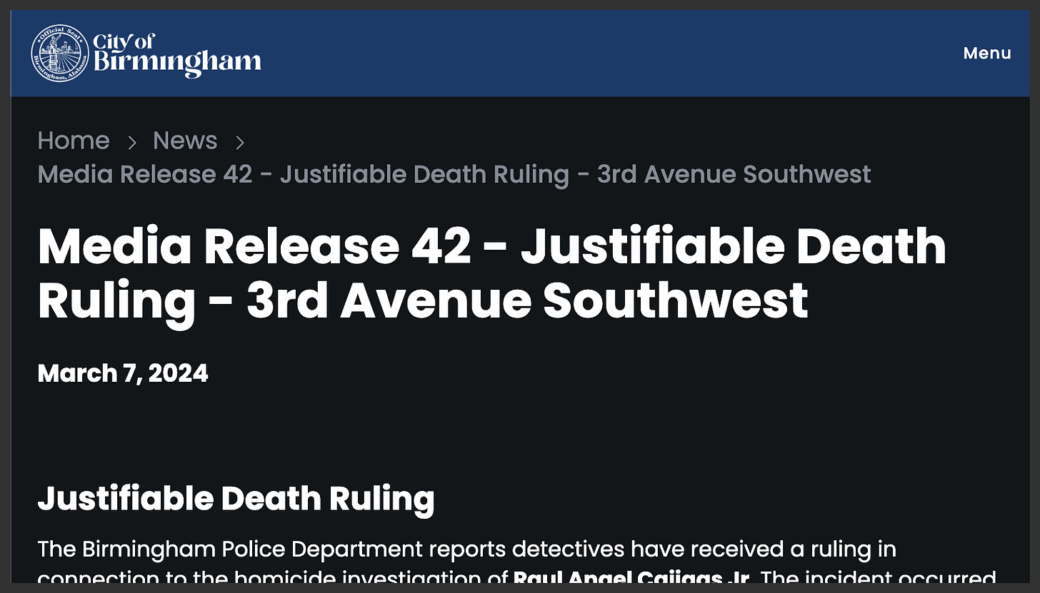 The City of Birmingham made the Justifiable Death Ruling available to the public.