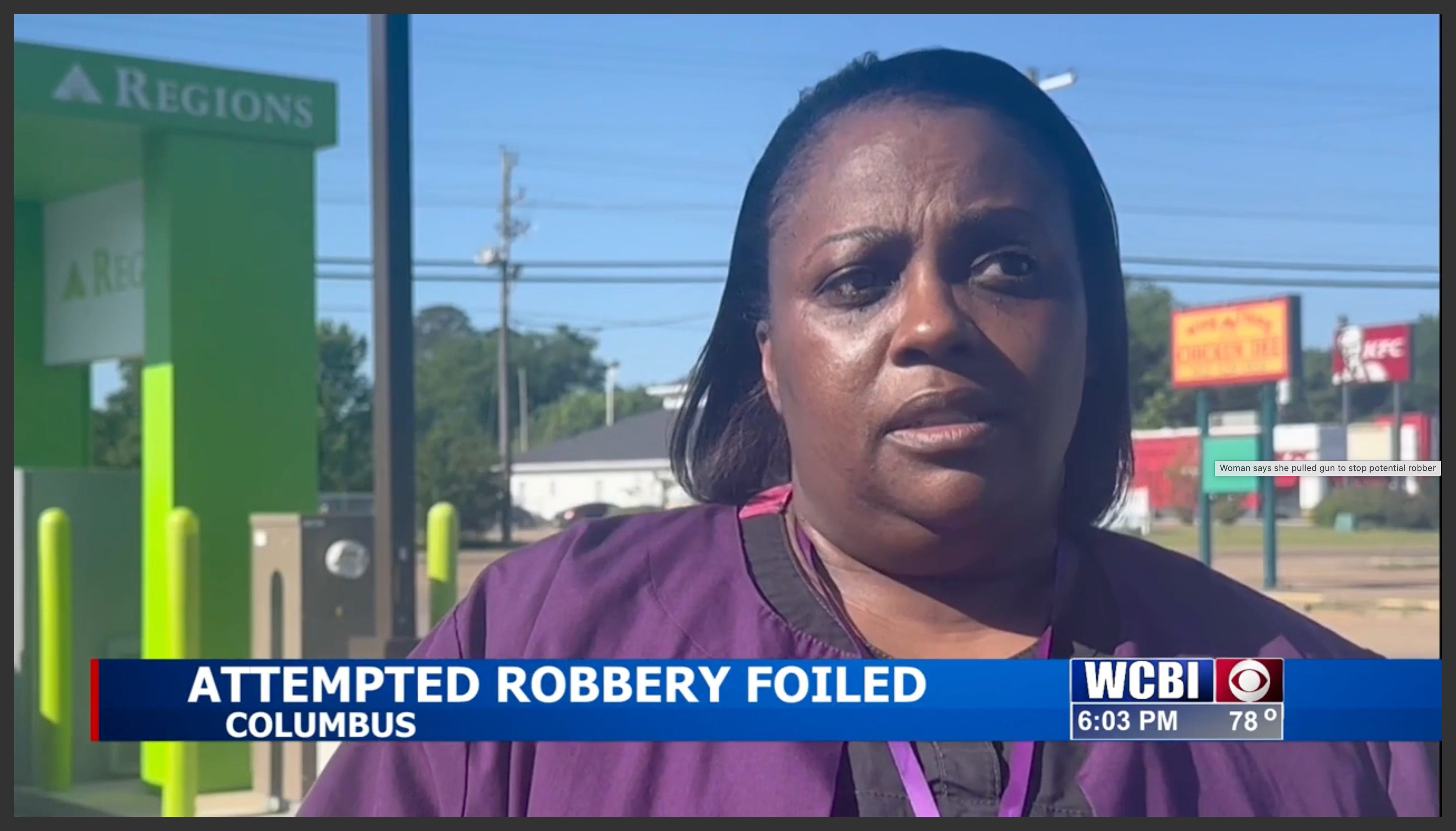 Sharion Long tells the story about what happened while she was using an ATM at 6:45 AM in Columbus, Mississippi: