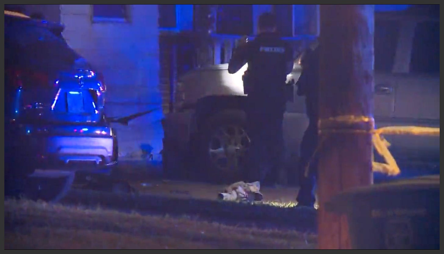 We can’t credit him with good aim — he apparently didn’t hit anything. But he made Walker go away, which was good, because the victim’s gunshot wound in the right upper thigh was very serious. He was taken to the hospital and initially listed in critical condition, but his condition stabilized.
