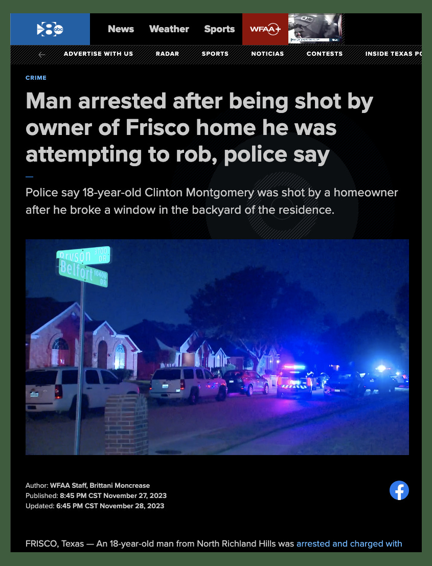 WFAA has the most complete coverage, with a single article that brings all the important parts together, including information that wasn’t in the police report. They’re clearly trying to give a complete picture and not just the bare bones.