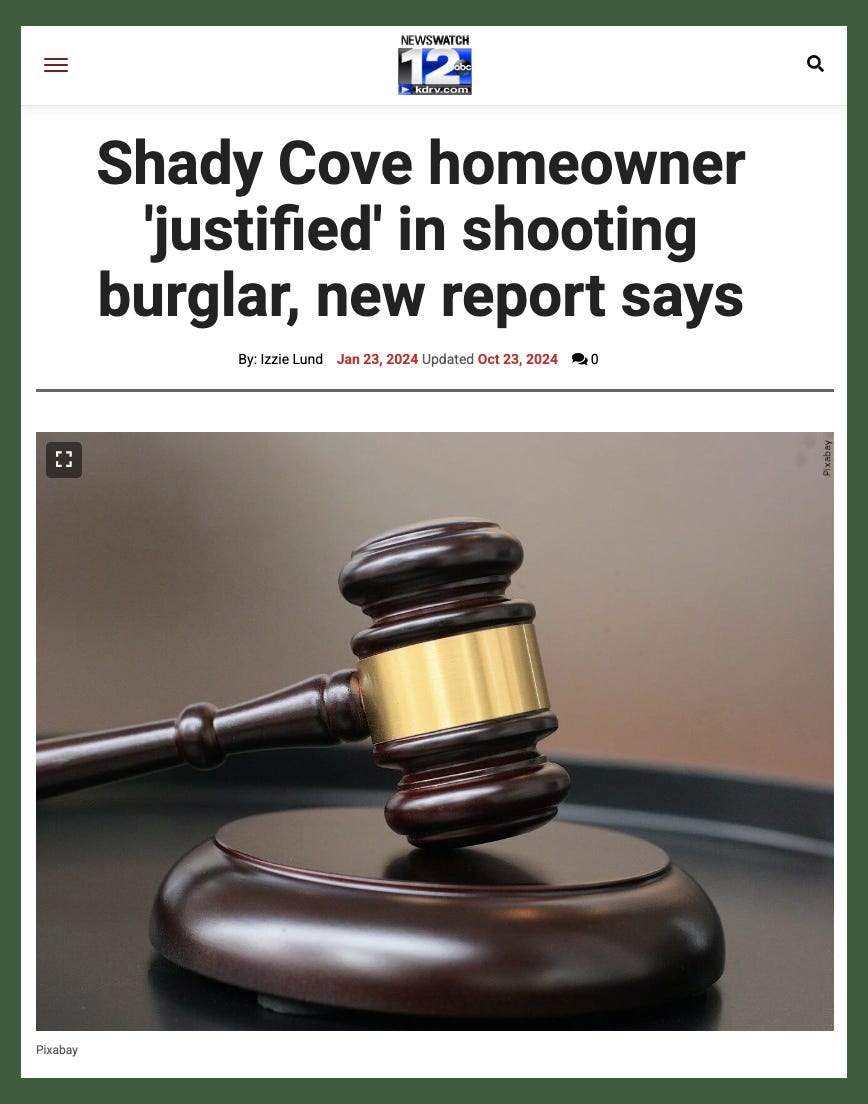There’s just one piece of good news to come out of this terrifying encounter: On January 23, 2024, the Jackson County DA’s office issued a press release that ended with the line, “In this situation, [Jason] was justified under Oregon law to use deadly physical force.”