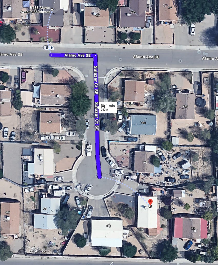 Salazar Court SE is a cul-de-sac; apparently, one of the homes there has one or more elderly people living in it, and a caregiver helps out there.