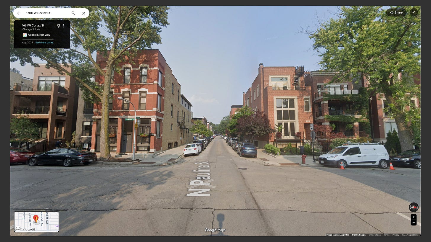 A little before 5 PM on a Saturday afternoon in the West Town neighborhood of Chicago, a 68-year-old man was in an alley behind the 1700 block of West Cortez street. It doesn’t look like a bad neighborhood on Google Maps, but I’m no local.