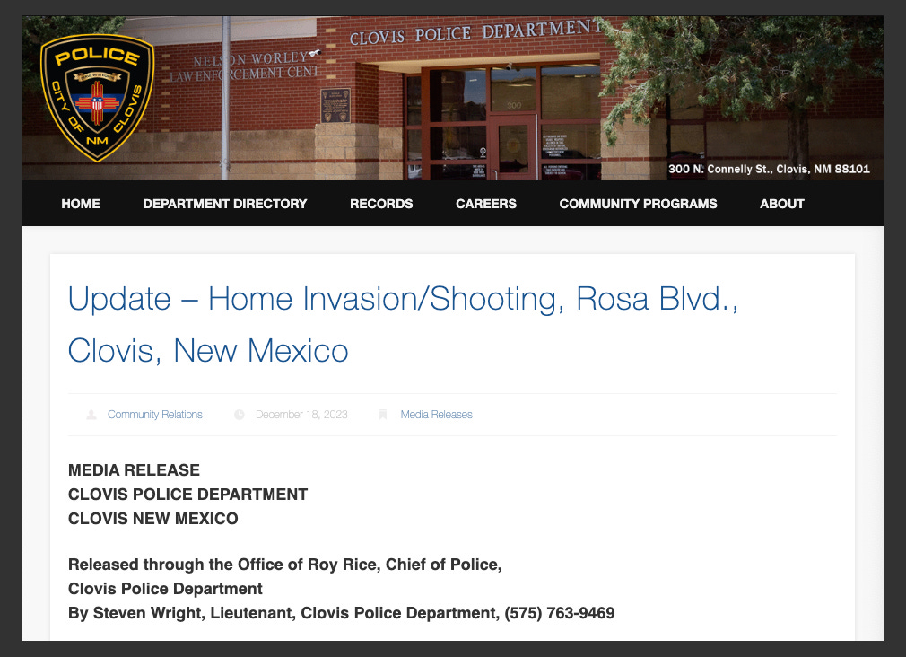 The runaway best source for this story was from an unaffiliated local news source called The Eastern New Mexico News, “Your Source for Local News,” serving Clovis, Portales, Tucumcari and the Surrounding Communities. David Stevens used police and court records to really flesh out the story, and is the only source for things like the police at the brother’s house. It’s not the most linear retelling of what happened, but that’s because he’s trying to structure it like a news story — telling it in a more linear fashion is my job. Great work here by the local team.