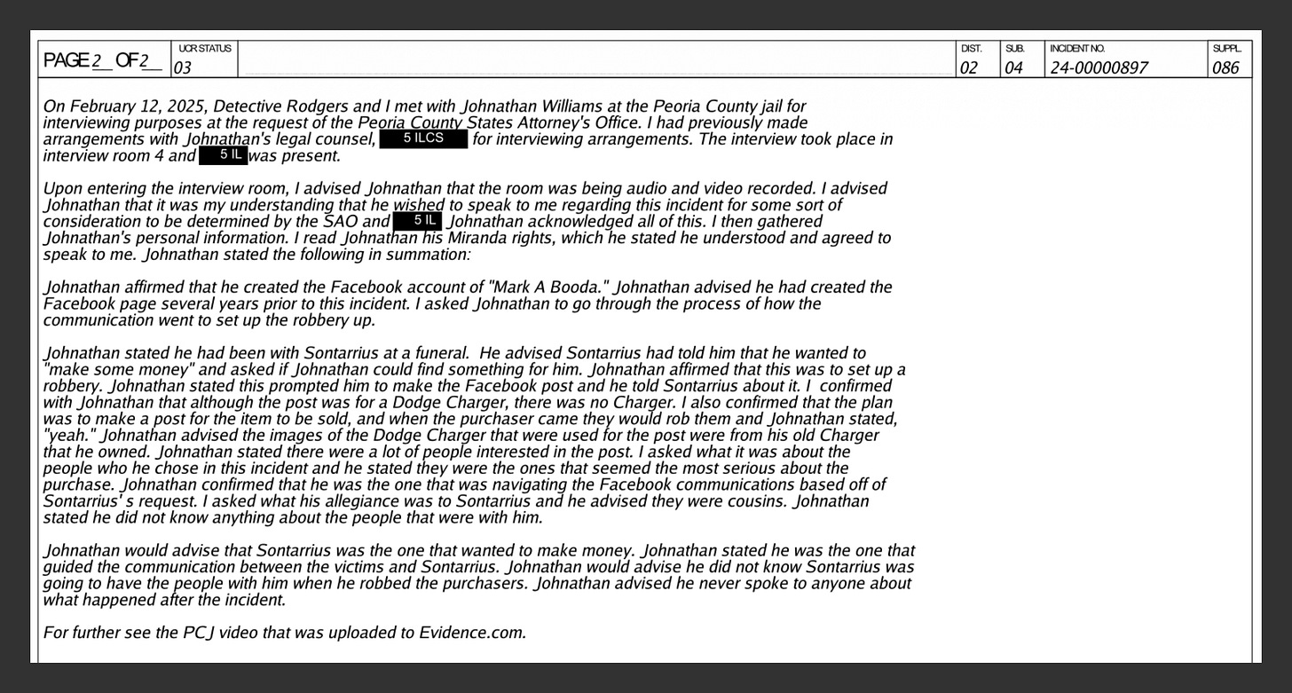 The information so far has been taken from Johnathan’s statement to the police, which was given to get him some consideration from the State Attorney’s Office. Caveat lector. The image shows the relevant section.
