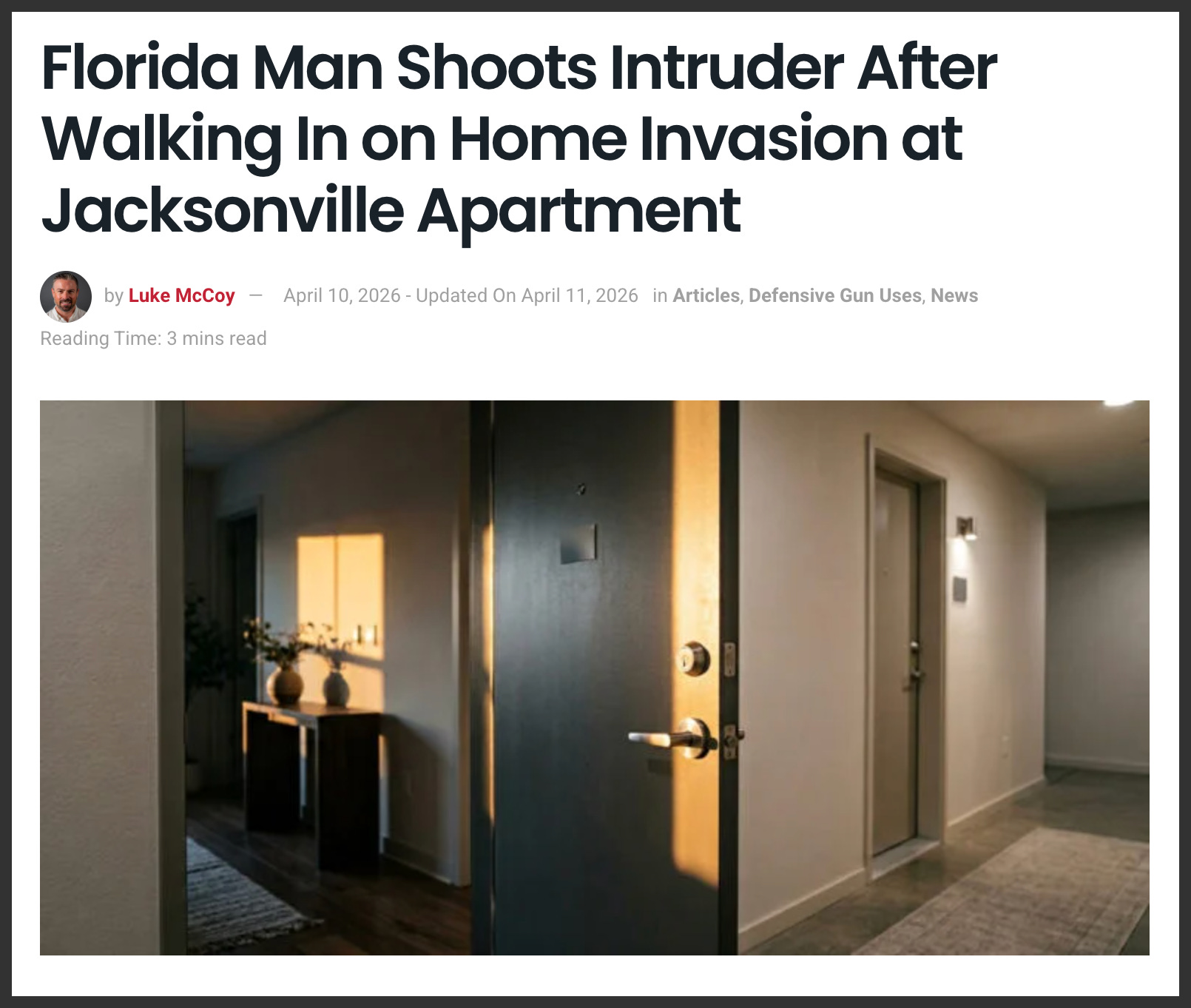 Florida Man Shoots Intruder After Walking In on Home Invasion at Jacksonville Apartment (USACarry)